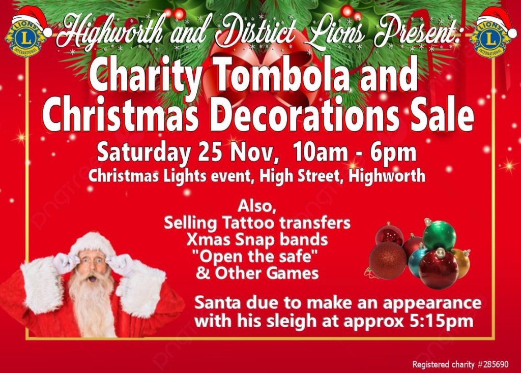 The Highworth Lions Club have been working hard with Santa to give children from Highworth and surrounding area. Santa will be on his sleigh at COOP & Aldi in Highworth, The Orbital off Thamesdown Drive, The Highworth Lights Switch-on, Blunsdon & Tadpole Village.