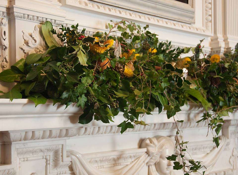 Decorations include foliage and incredible arrangements produced by the Royal Wootton Bassett Flower Club which add splendour and festivity to the mantle-pieces and doorways throughout the house.