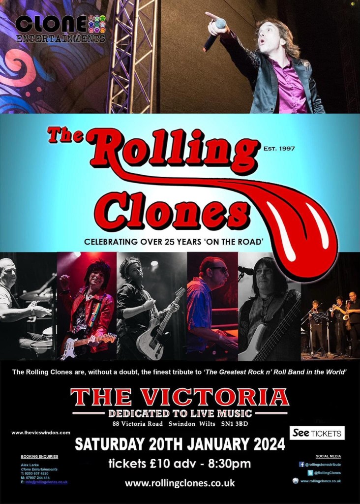 Saturday 20th: The Rolling Clones live at The Vic – The Worlds Greatest Rolling Stones tribute band comes to The Vic Swindon for one awesome night not to be missed!