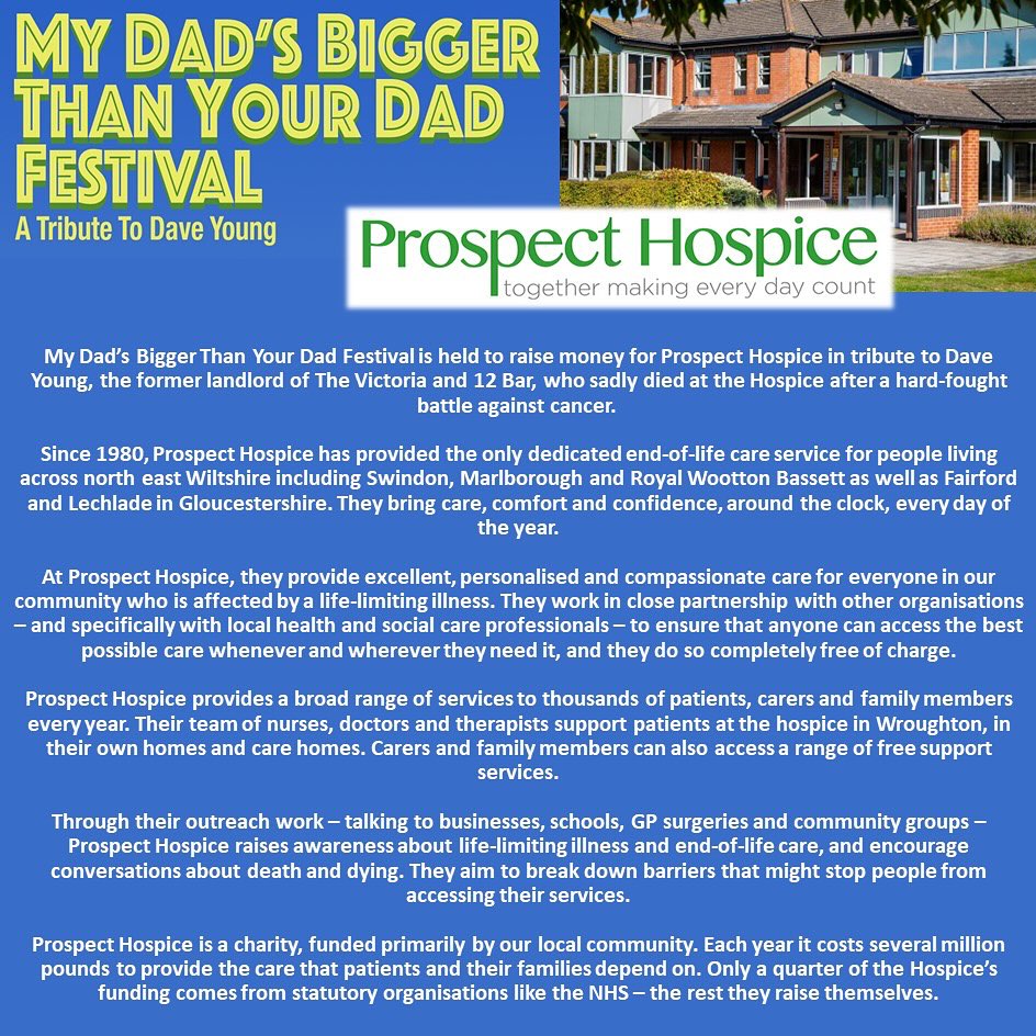 In its first three years My Dad’s Bigger Than Your Dad Festival has raised over £32,000 for Prospect Hospice in tribute to Dave Young, the former landlord of The Victoria and 12 Bar who died in early June 2021 at Prospect Hospice after a hard-fought battle against cancer.