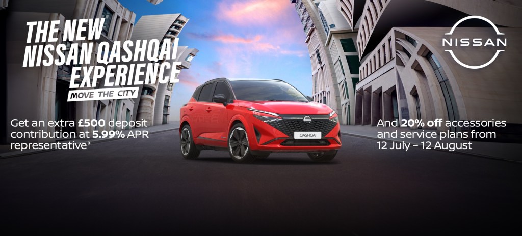 You could get an extra £500 deposit contribution at 5.99% APR representative* towards a New Nissan Qashqai when you purchase between 12 July – 12 August 2024.