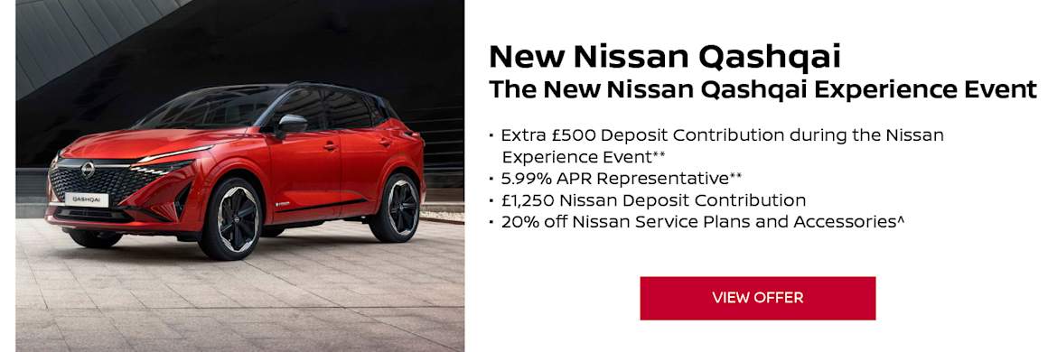 Plus, get an extra £500 towards your deposit on a New Nissan Qashqai at 5.99% APR representative and 20% off accessories and service plans on the New Nissan Qashqai.