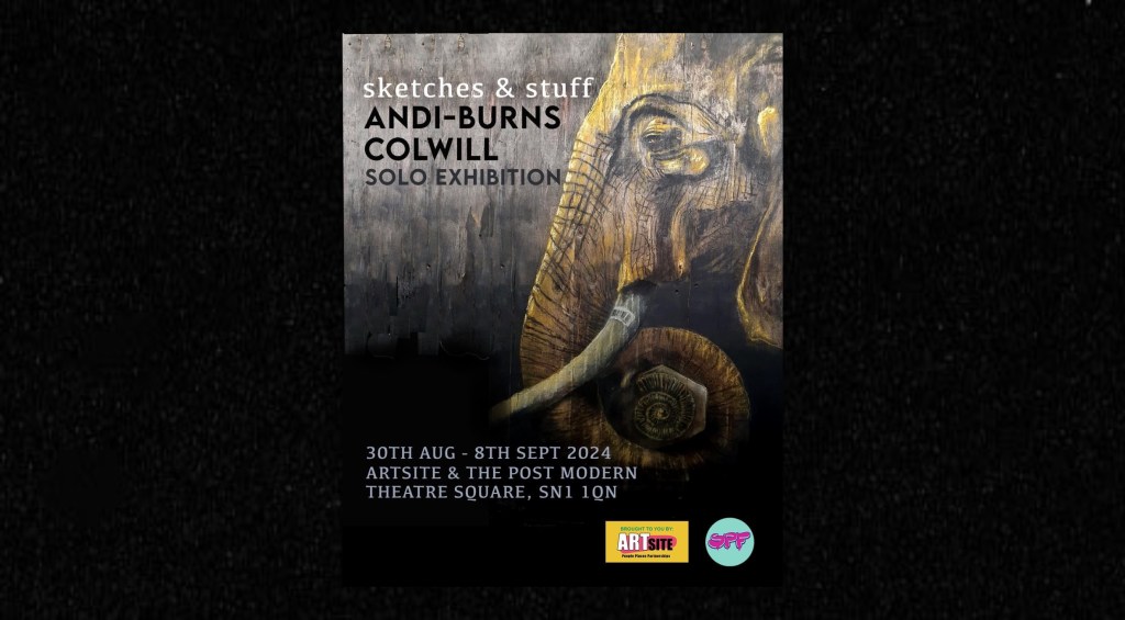 Andy Burns Colwill’s latest exhibition ‘Sketches & Stuff’ can be seen at The Post Modern, Artsite, Theatre Square @artsite.ltd from Friday 30 August to Sunday 8th September 2024
