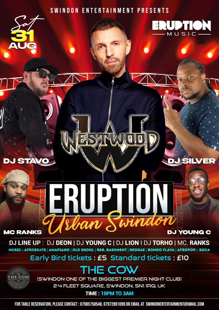 Last weekend saw another big headliner at The Cow Nightclub in town. The Cow hosted DJ legend Westwood for a night of banging tunes supported by local DJ Silver and DJ Stavo from Bristol for the latest Eruption Urban Swindon event.