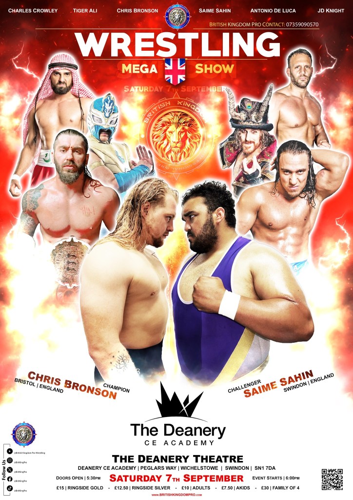 Featuring Swindon’s own Saime Sahin vs. Champion Chris Bronson as the British Kingdom Pro-Wrestling Heavyweight Championship will be on the line, with an appearance from British Wrestling Legend Doug Williams.