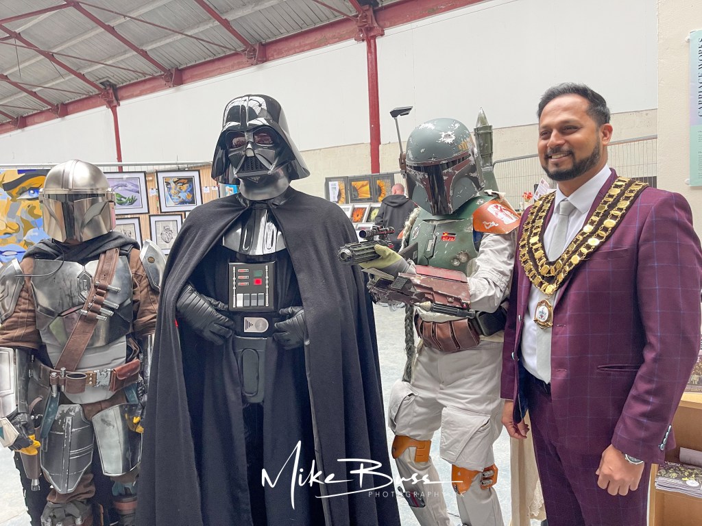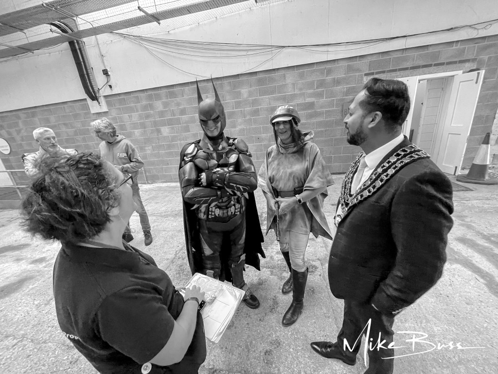 As well as Stormtroopers, Jedi, Darth Vader and other Star Wars cosplayers provided by MK Garrison, the public were entertained by Darlek’s, dragons movie inspired cars and motorbikes such as a Batmobile resembling a style from the days of George Clooney and Val Kilmer’s time as the caped crusader, as well as a fully autonomous AI robot T1-FNY resembling one of the famous origin robots from the Terminator franchise.