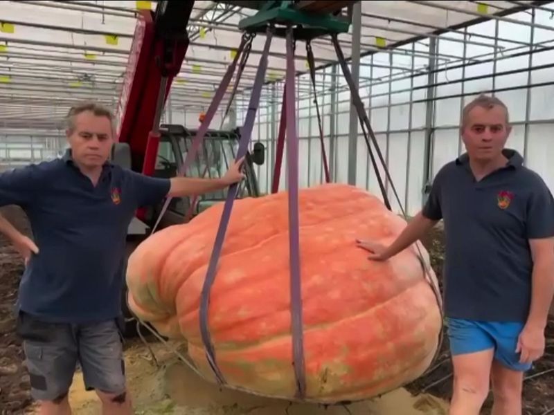Ian and Stuart Paton, both 63, cloned a ‘monster’ pumpkin they produced two years ago to grow the ‘staggering’ squash, expected to weigh more than 1.1 tonnes (185 stone/2,6000 lbs).