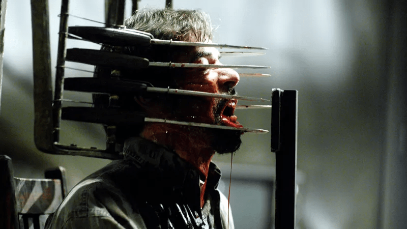 Director Darren Lynn Bousman places his camera lovingly close to the victim’s skin as it gradually stretches and then tears, making this trap one of the most difficult to watch in the franchise’s history