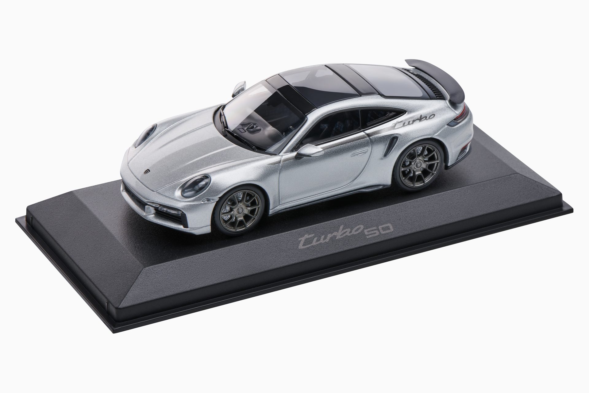 If your garage does not have room for the real thing, allow yourself to be inspired by the exclusive 1:18 scale model 911 Turbo 50Y Edition (£326.00). Finished in GT Silver, it showcases impressive attention to detail and deserves its place in any collection.