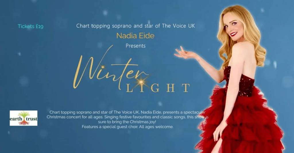 Chart topping soprano and star of The Voice UK Nadia Eide presents a spectacular Christmas concert for all ages. Singing festive favourites and classic songs this show is sure to bring the Christmas joy!