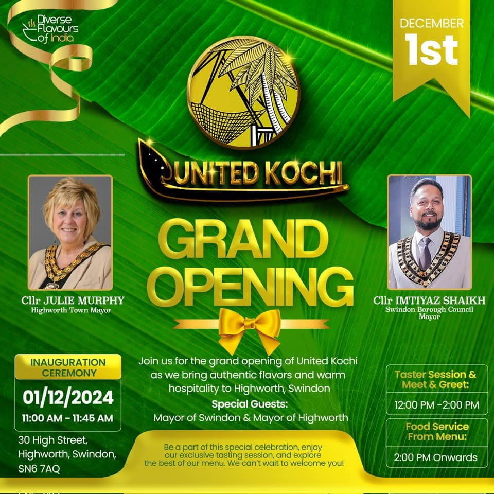 Highworth’s high street is getting ready for a new addition, United Kochi, an authentic South Indian restaurant promising diverse flavours of South India, particularly from the South Western coastal city of Kochi which has been a port since 1341 after a flood opened up its harbour to the Arab, Chinese and European merchants.