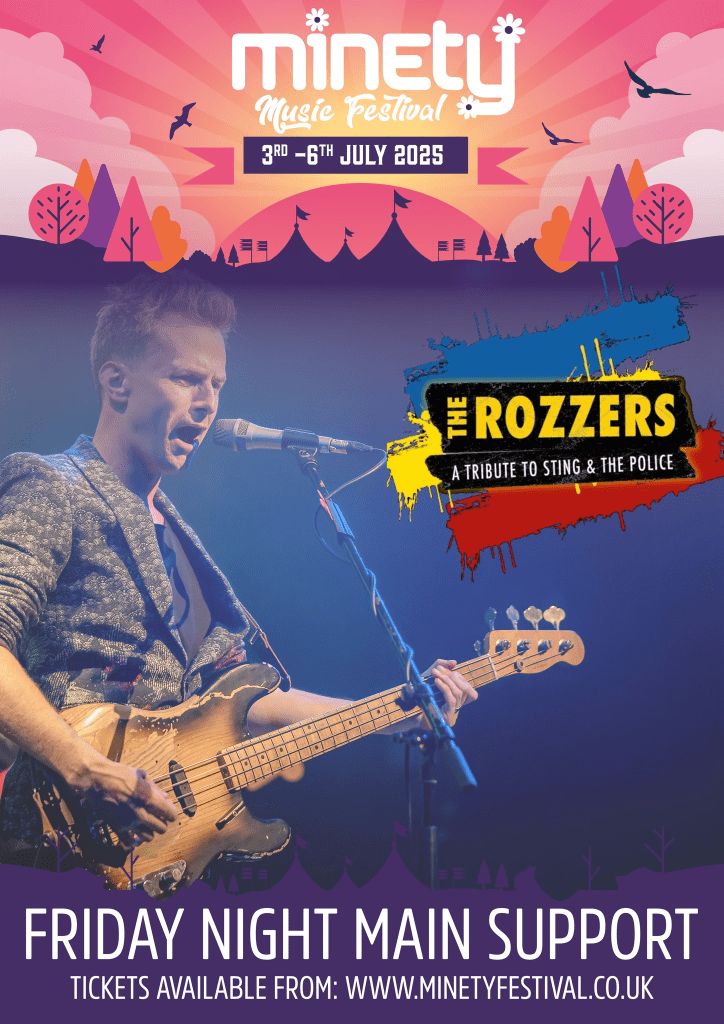 Also performing at this years Minety Music Festival will be The Rozzers supporting FAUX FIGHTERS on the Friday night. The Rozzers are Europes number one tribute to Sting & The Police since forming in 2011. The band have appeared all over the world, playing theatres, festivals and cruise ships.