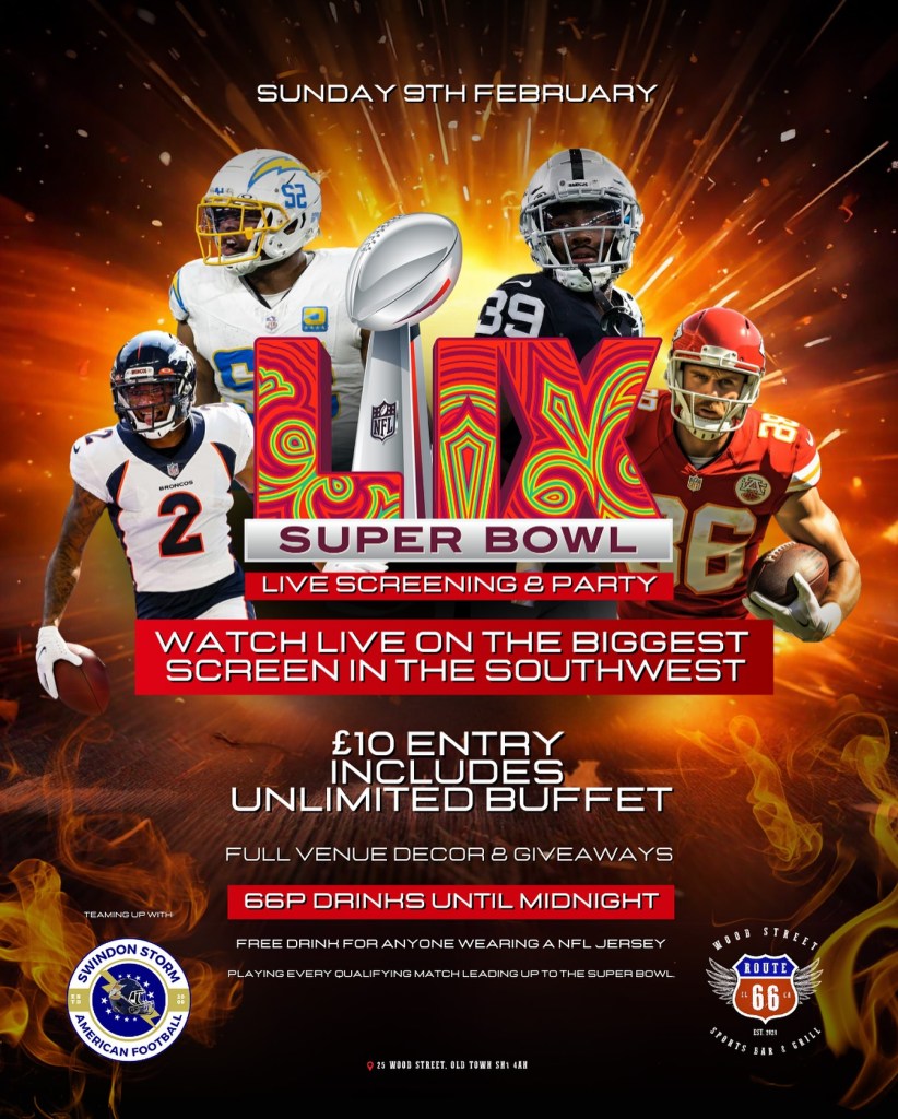 American Sports Bar, Route 66 Swindon, in Old Town will be playing the full match and build up on the largest screen in the South West of England! Only a few tickets remain, so get them quick! Click HERE to purchase tickets.