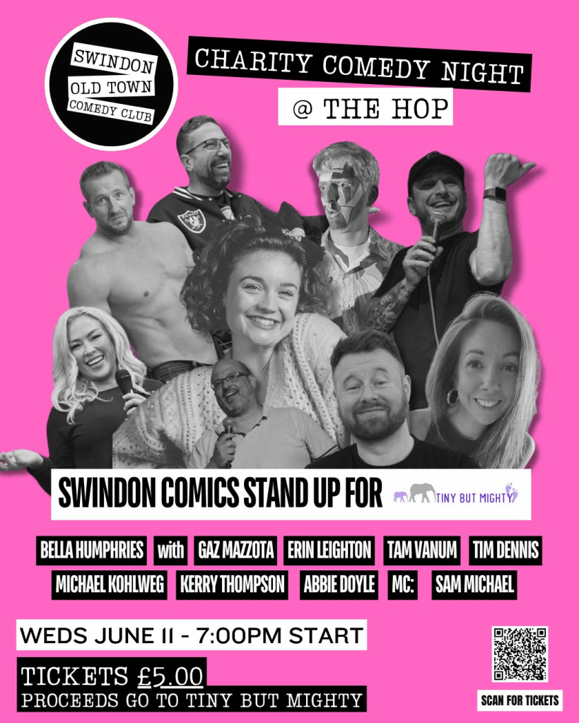 Bella and Michael will be performing among a packed-out line up of Swindon comedy talent, all coming together to raise money for Tiny But Mighty Swindon.