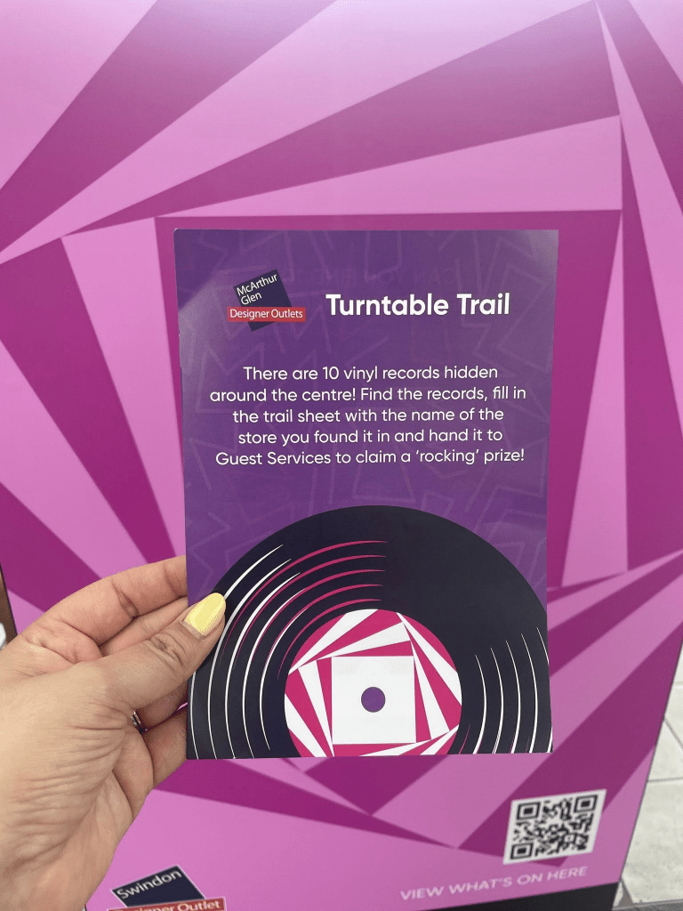 - Vinyl Record Trail: Embark on a treasure hunt around the centre to find 10 hidden vinyl records. Successfully complete the trail and you’ll be rewarded with a cool retro-themed gift from Guest Services!