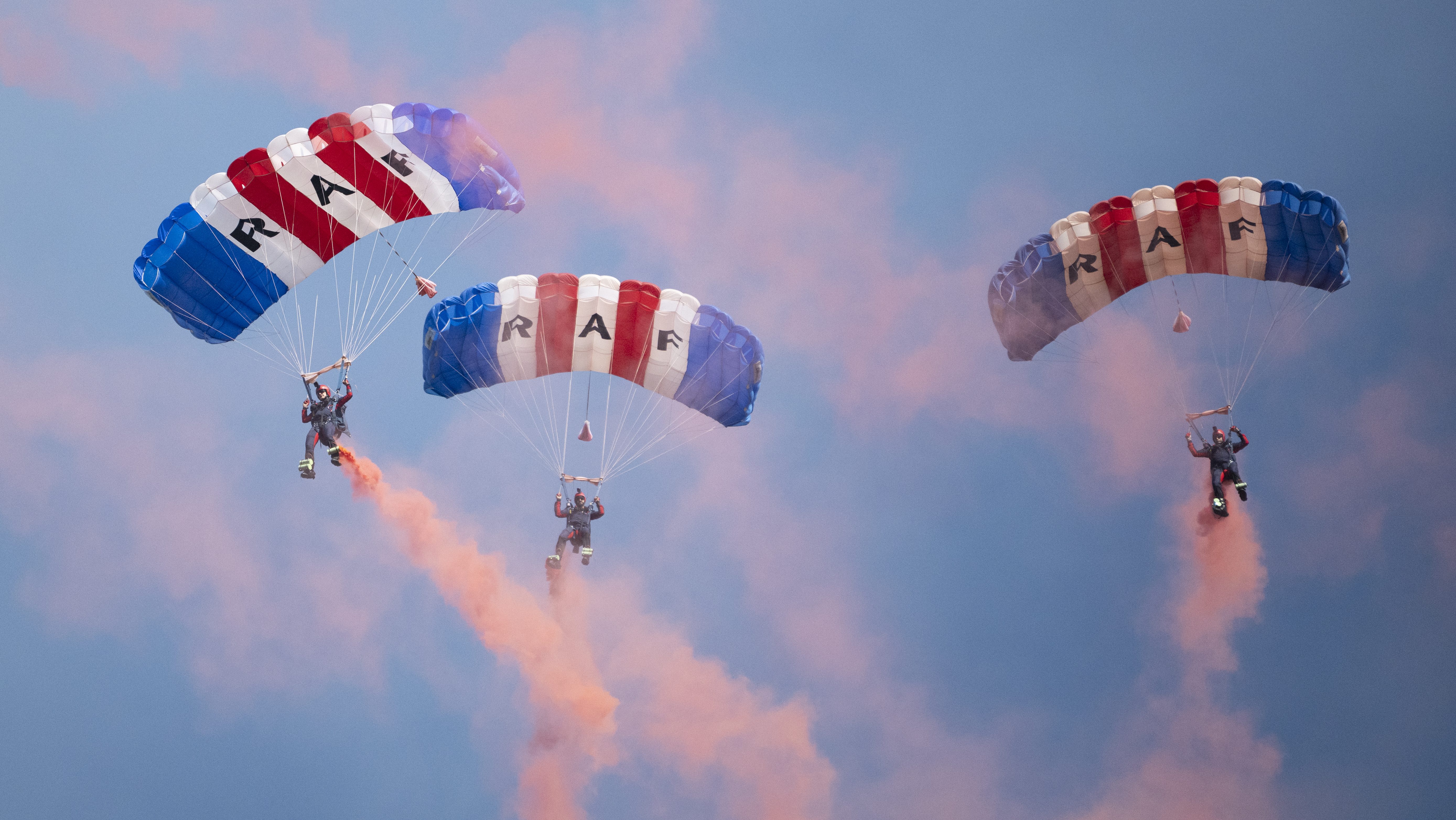 The RAF Falcons jumped in formation from between 3000 – 2500ft in just minutes, with trailing red smoke showing their descent. Flying in from RAF Brize Norton in Oxfordshire, the nine strong team made a graceful entrance at Longleat, rounding off Friday’s air display slot.