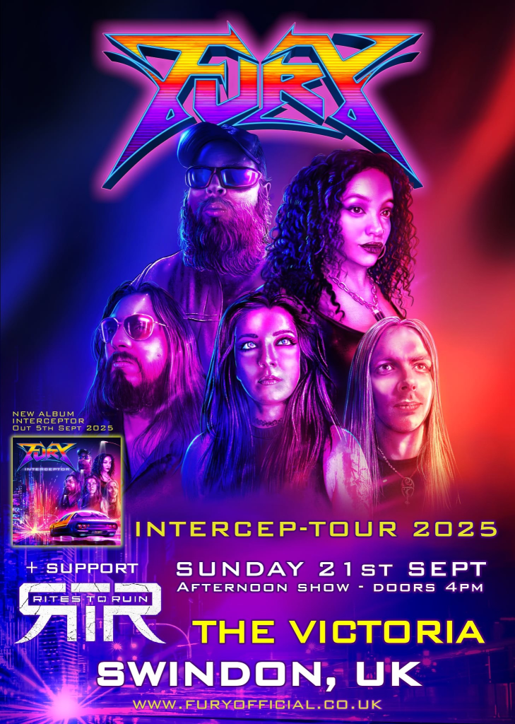FURY British heavy metal featuring bassist Becky Baldwin (Mercyful Fate live 2022 & Hands off Gretel) the thunderous Tom Fenn (Torous, Brassick) on drums, Tom Atkinson (Vice, ex-Absolva)