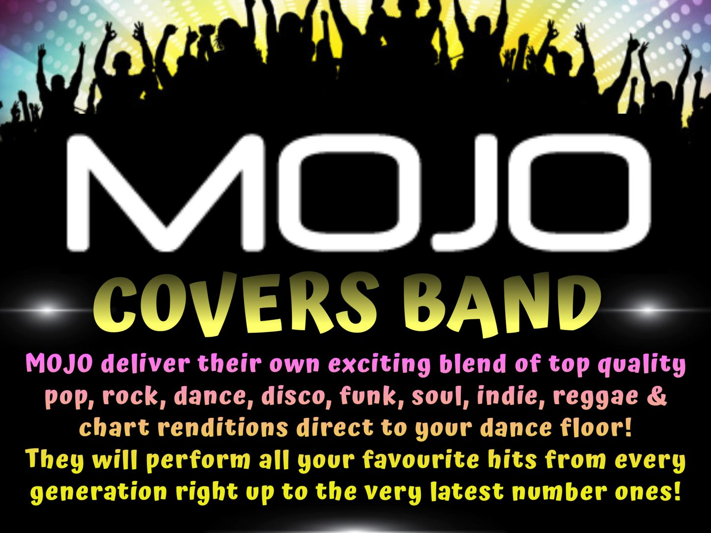 We’ll be playing songs you know, love and will want to dance to including hits by Fleetwood Mac, Elvis, Crowded House, Bob Marley, Lady Gaga and loads more!