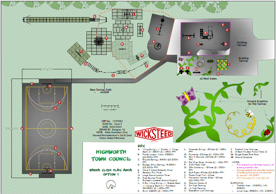 The approved design was approved after extensive community consultation. The final design features a Multi-Use Games Area (MUGA) which will include basketball hoops, and football goals. There will also be an infant and junior play park and an exciting zip-wire!