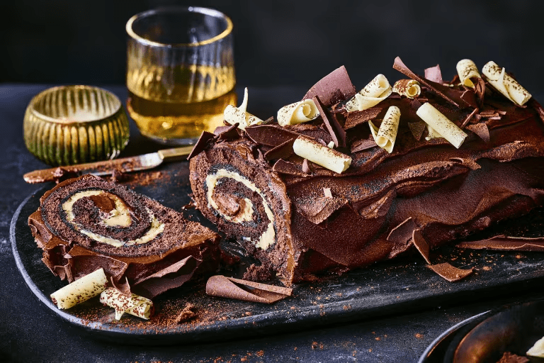 Last year’s sellout is back! A light chocolate sponge filled with Madagascan vanilla cream and rich milk and dark chocolate ganache, hand-finished with even more ganache and decorated with dark and white chocolate curls. Use by date guaranteed until 27 Dec.
