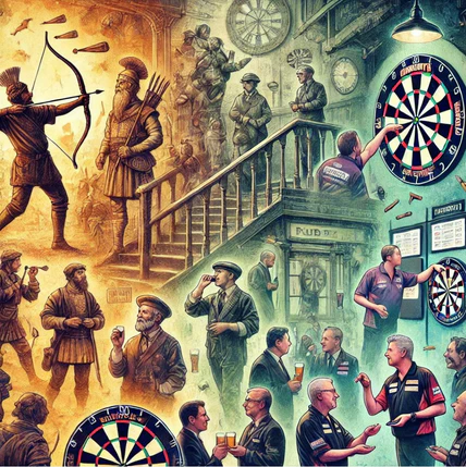 The origins of the game of darts date back to the early 14th century when bored archers and infantrymen began by “shooting” repurposed arrowheads at the discarded lids of wine casks.