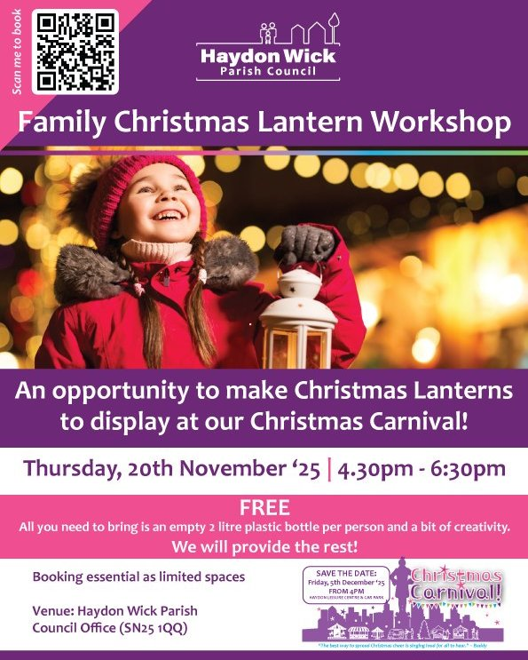 Join Haydon Wick Parish Council for a FREE family lantern-making workshop and light up the Haydon Wick Christmas Carnival!