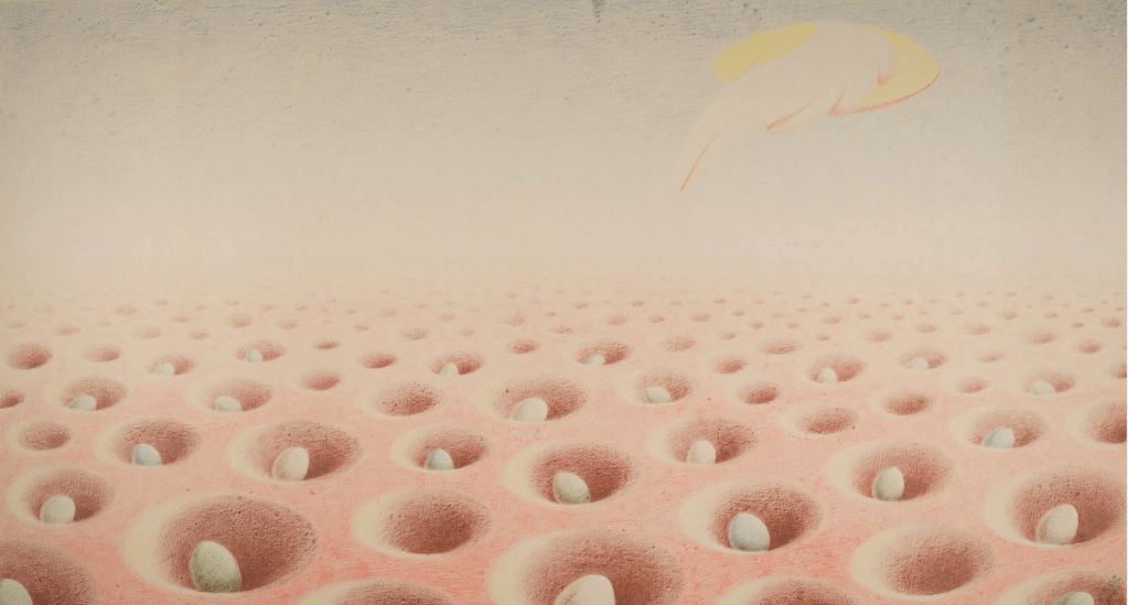 Alongside the opening of The Lost Surrealist: Henry Orlik’s Quantum Revolution, Museum & Art Swindon is pleased to present a new acquisition to our collections.Eggs Unhatched on the Sun by Henry Orlik was acquired through the Contemporary Art Society and with assistance from the Friends of Museum & Art Swindon and artist’s representatives at Winsor Birch. It is now on display in our Origins Galleries. You can read more about the artwork by looking back at October’s Item of the Month.(Image: ‘Eggs Unhatched on the Sun’ by Henry Orlik, ©Henry Orlik, Courtesy of Winsor Birch Limited).