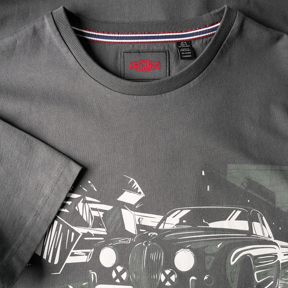 T-shirt immortalising the Jaguar Mark II. Sports a dynamic graphic to the front and Ultimate Getaway Car logo to the back neck. Finished with Heritage lozenge to the sleeve.