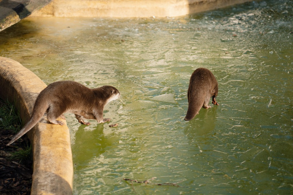 Whilst Asian short clawed otters wouldn’t usually experience freezing temperatures, keepers are constantly monitoring all species to ensure normal behaviours, with animals always having the option to warm up inside their houses.