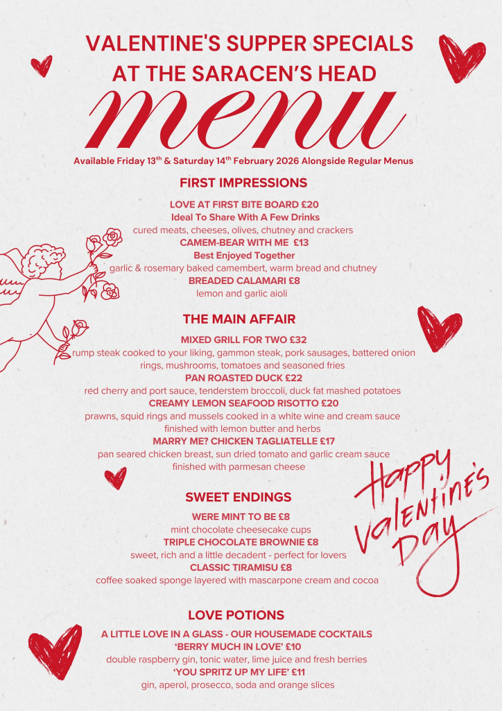 Our Valentine’s Saracen’s Supper Specials will be available alongside our normal menu.
