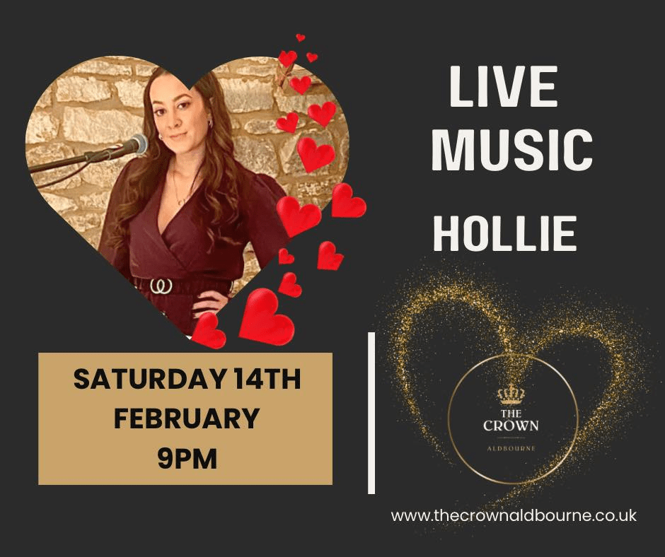 Valentine’s Night at The Crown… Set the mood this Saturday 14th February from 9pm with live music from the brilliant Hollie.