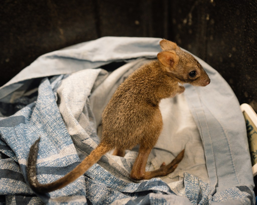 The joey, which has not yet been named, is thought to be approximately 90 – 100 days old and weighs just 135 grams. As a marsupial, joeys are born after 12days of gestation, before spending 90–98 days in the mother’s pouch.