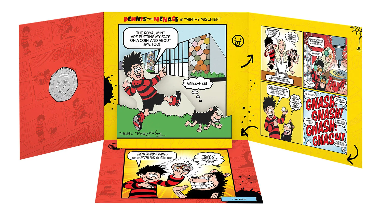 A collaboration between the Royal Mint and Beano will see Dennis and his dog Gnasher feature on collectable 50p coins.