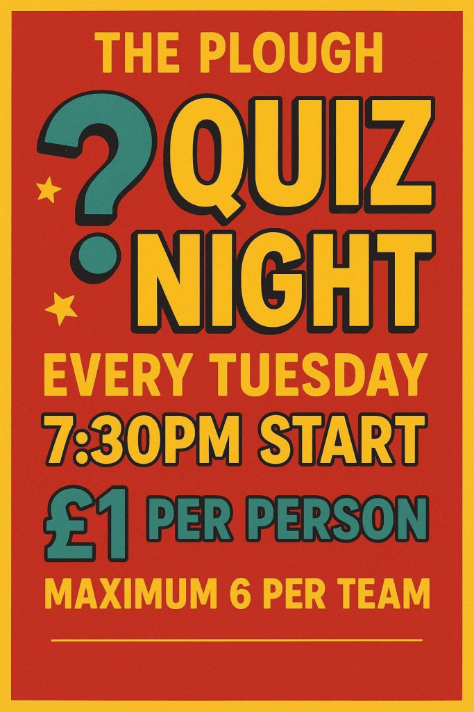 For up to date information on Quiz Nights and other events at The Plough, check out their Facebook page – Click HERE.