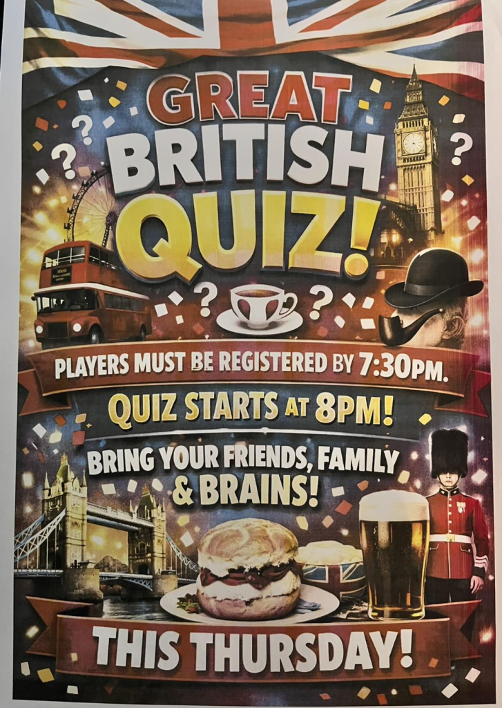 Keep up to date with events such as Quiz Night on The Village Inn Facebook page – Click HERE.