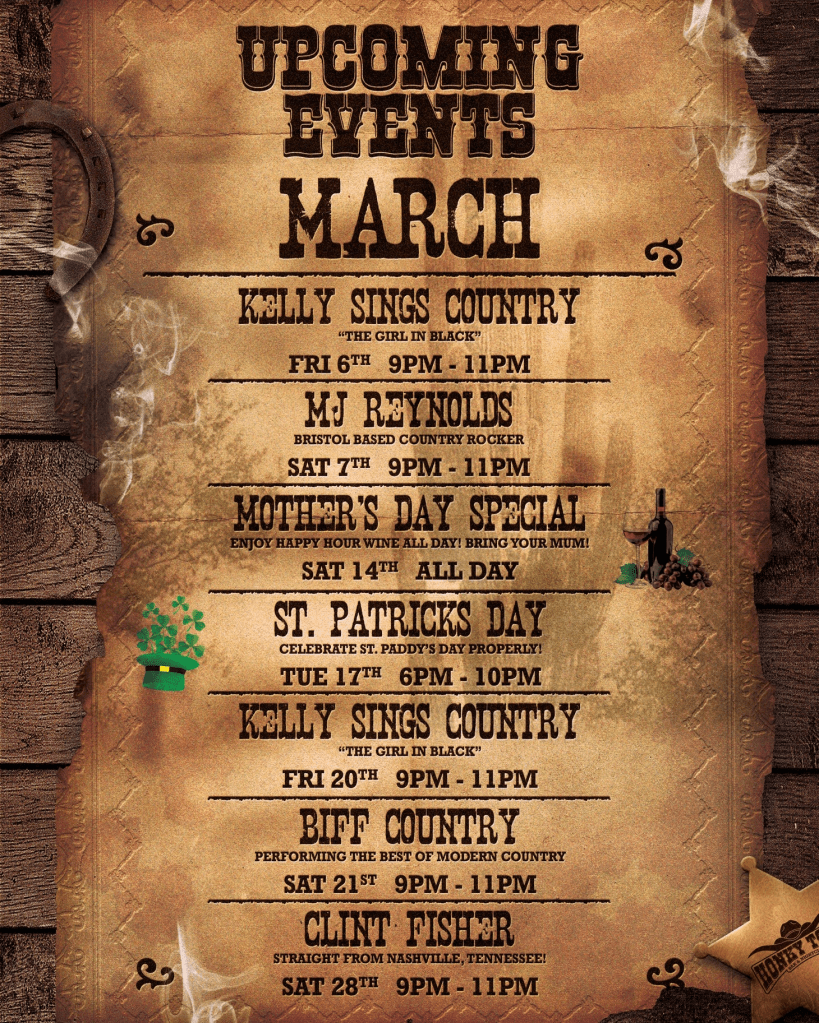 March is here, and spring is just around the corned! And Swindon’s very own Honky Tonk Bar has a stomping line-up ready for you all!
