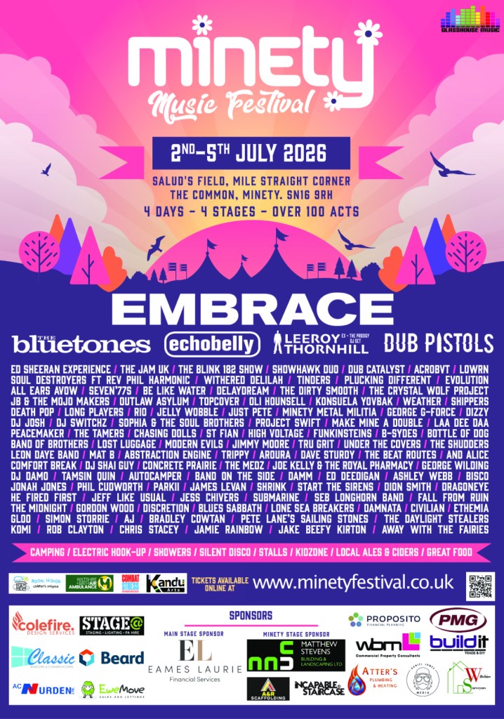 Exciting news from the organisers of the Minety Music Festival announce that ECHOBELLY will be joining this summers festival on Sunday 5th July 2026. This years event, to be held from 2nd – 5th July 2026 at Salud’s Field, Mile Straight Corner, The Common, Minety. SN16 9RH.