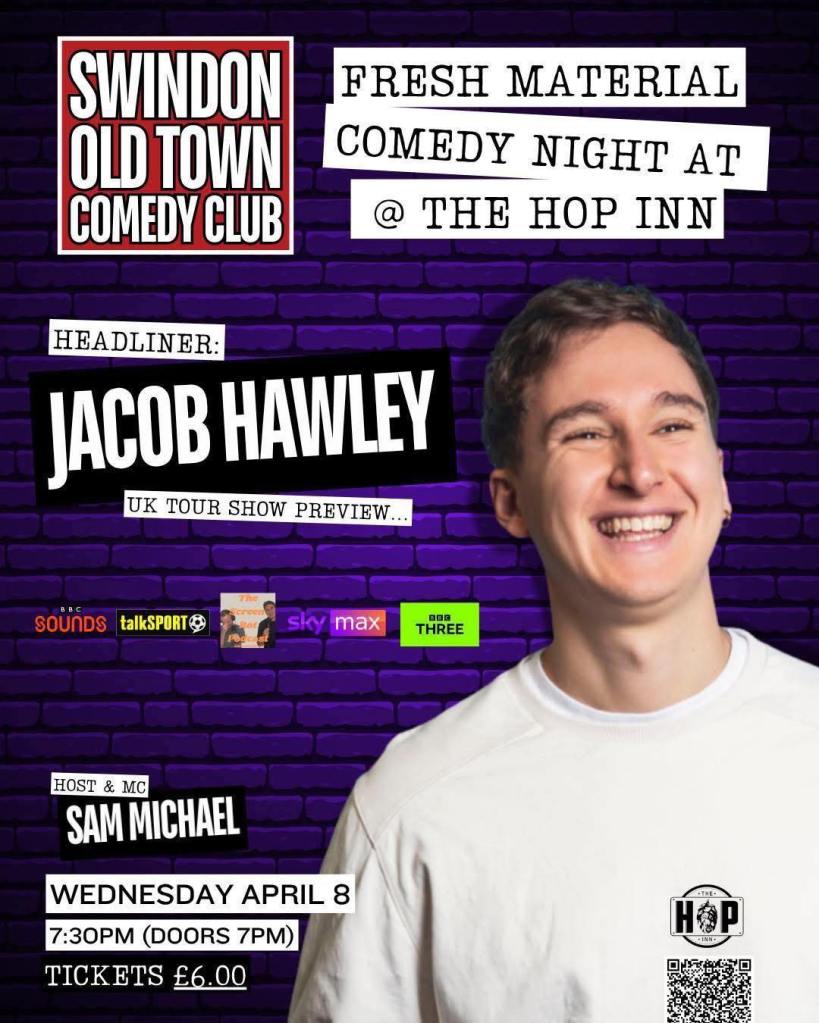 Jacob Hawley (Screen Rot Podcast, Russell Howard Hour, BBC’s Ladhood) previews his upcoming 2026 UK Tour at The Swindon Old Town Comedy Club’s FRESH MATERIAL night.
