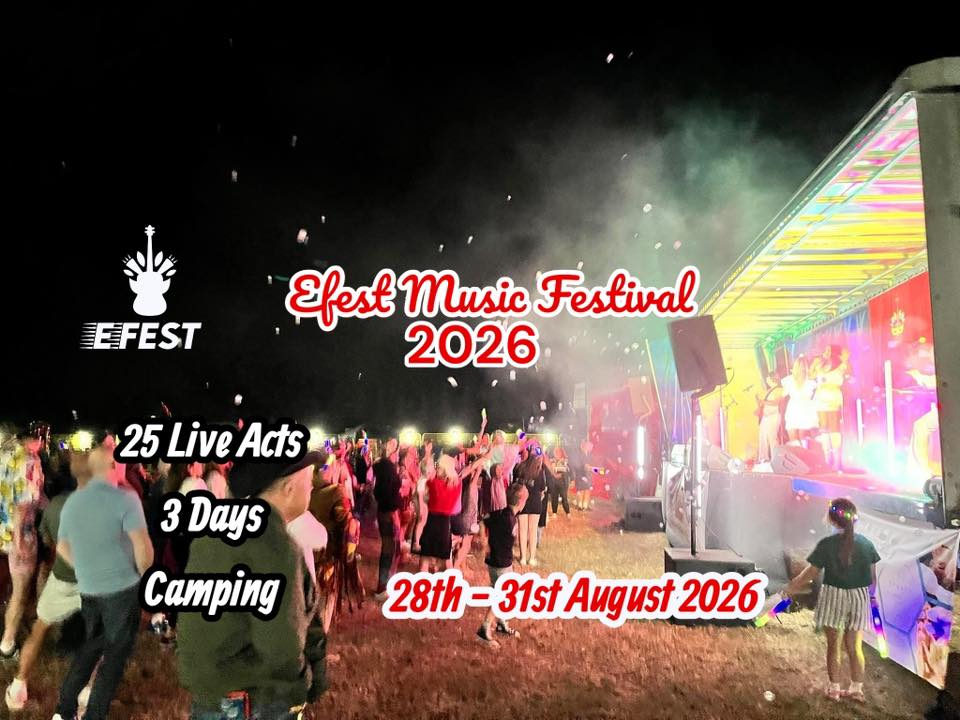 EFest Music Festival 2026 – Friday 28th to Sunday 31st August.