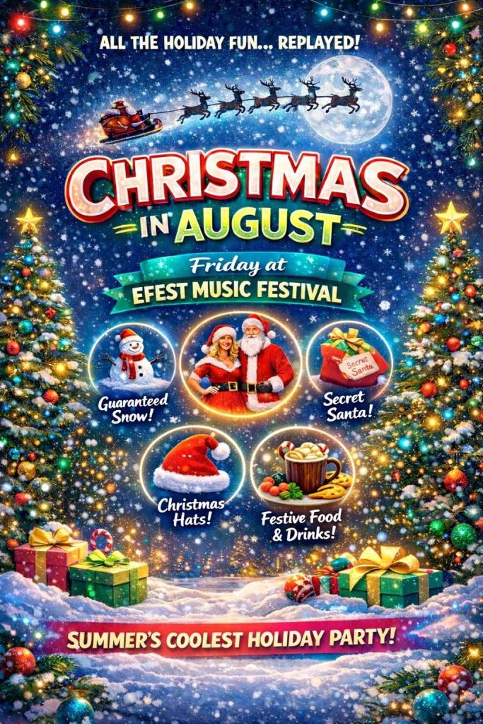 Camping is also available at Efest with a fantastic campsite with good quality grass without risking on all that mud getting trampled everywhere. And this year, the theme is Christmas! Yes you read that right! This summer, EFest is bringing the festive spirit to the August Bank Holiday Weekend! And they are even bringing snow!
