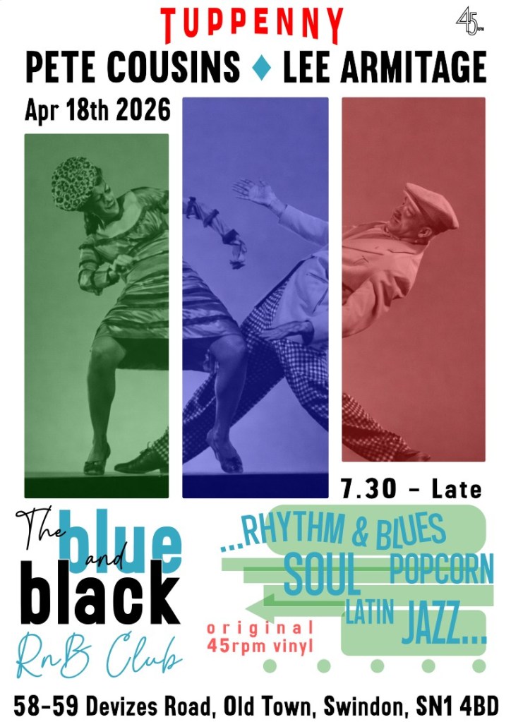 This Saturday, the Blue & Black RnB Club returns to The Tuppenny. DJs for the night are Peter Cousins (The Teddy White Band) and Lee Armitage (Peloton), playing Rhythm & Blues, Soul, Jazz, New Breed, Popcorn and other tunes touched by the hand of Mod, all on ORIGINAL vinyl 45s.