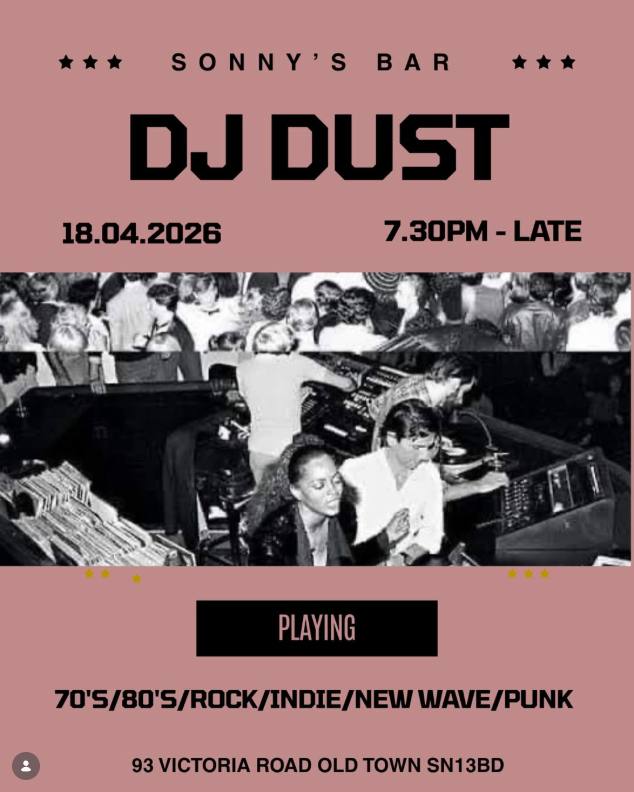 First ever full set for DJ Dust at Sonny’s Bar! Expect loads of alternative-tinged stuff by the likes of… Adam & The Ants, David Bowie, Siouxsie & The Banshees, The Stone Roses, Alice Cooper, Sisters Of Mercy, Pixies, Magazine, The Cure, Bauhuas, Blondie, Talk Talk, Pink Floyd, Depeche Mode, New Order, Led Zeppelin, Sex Pistols, The Clash, Happy Mondays, Joy Divison, The Jam, Simple Minds, Killing Joke, Fleetwood Mac, The Smiths and much much more…